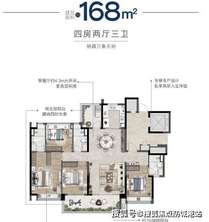 168㎡四房两厅三卫:两梯两户设计,私享高阶人生体验,7米阔绰阳台,俯揽天幕森林公园。