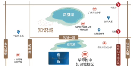 广开云翰一路之隔即为华附知识城校区,直线仅100米。该校是黄埔区截至目前投资规模最大、技术标准最高的学校,已于2023年正式招生。初中部采取自主招生+全区摇号的方式,业主如能入读,家门即享优质教育。此外,周边还有华附知识城小学、广东外语外贸大学知识城实验小学、凤凰湖小学、广州实验中学&小学、新侨中学等多所优质学校。