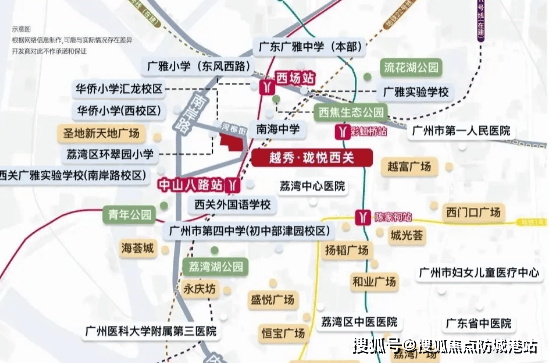 教育配套是越秀・珑悦西关的一大核心优势,项目周边超 10 所学府环伺,涵盖幼小初高全龄教育,为孩子的成长保驾护航。幼儿园方面,有广州荔湾区嘉贝儿幼儿园、广州市二商幼儿园、玛利亚幼儿园等多所优质园所可供选择;小学配套有 24 班华侨小学(以华侨教育集团为办学主体),且直线距离约 3 公里范围内还有环翠园小学等;初中则有西关广雅实验学校、西关外国语学校、广雅中学等知名学府,根据近几年荔湾周边初升高资料显示,项目附近学校升学率在区域内处于领先水平。