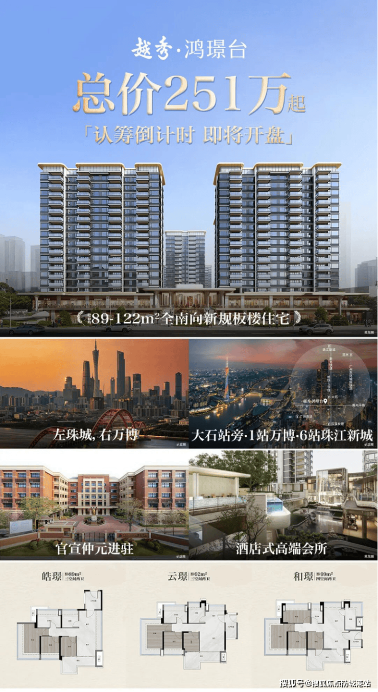 在广州这座充满活力与机遇的一线城市,寻找一处既能安放身心,又能承载未来梦想的家,是无数购房者心中最柔软的期盼。2026年的春天,番禺大石板块迎来了一位备受瞩目的“新成员”——越秀鸿璟台。作为该板块惟一新规楼盘,它不仅承载着区域更新的希望,更以"89㎡三房户型总价250万内任选”的震撼入市姿态,瞬间点燃了全城购房者的热情。