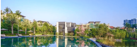 除了运动休闲配套,项目还注重社区生态环境的打造,3.8万㎡八色四季园林与7500㎡中心天然湖景相互映衬,种植了多种华南地区特色植被,实现四季有景、步步生花的景观效果。社区采用人车分流设计,车辆全部进入地下车库,地面仅保留人行步道与景观区域,既保障了业主的出行安全,又提升了社区的整体环境品质,让社区成为名副其实的生态宜居之地。