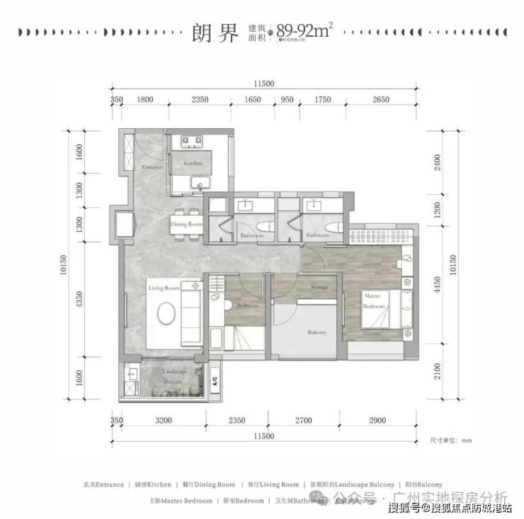 万科朗庭主打 80-128㎡三至四房户型,涵盖刚需、改善等多种需求,所有户型均采用科学布局,实现 “全明通透、动静分区、干湿分离” 的设计理念。其中 89㎡三房两厅一卫户型,三开间朝南,日照时长超 6 小时 / 天,客厅面宽 3.6 米,主卧面宽 3.2 米,空间利用率极高;115㎡四房两厅两卫户型,LDKB 一体化设计,客厅、餐厅、厨房、阳台连通,空间感堪比 130㎡户型,主卧带独立衣帽间 + 双台盆浴室,私密性极佳。
