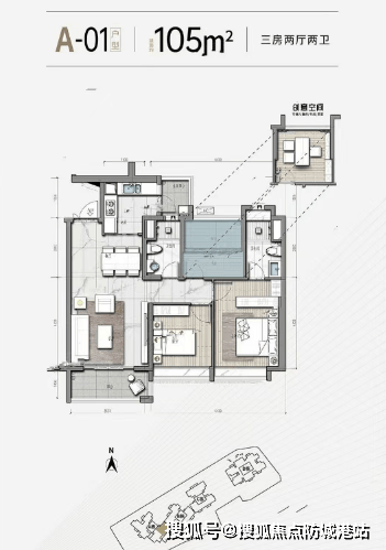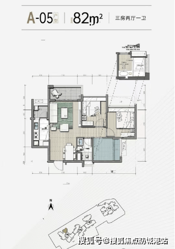 85㎡三房两厅一卫:与82㎡布局相似,高楼层采光更佳,总价约423万元;
