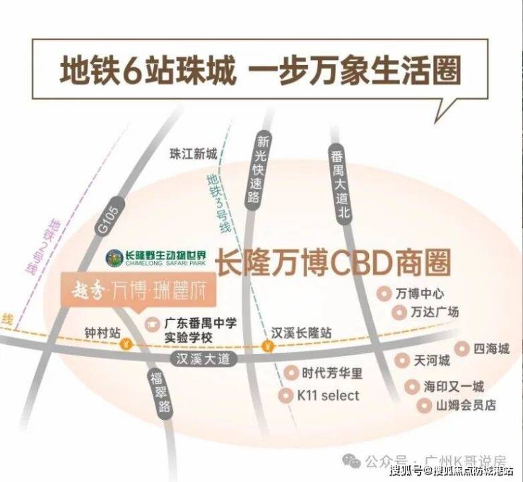自驾的话,家门口钟顺路连接汉溪大道、南大干线(已开通),双动脉横贯番禺核心,约10分钟长隆万博CBD,约30分钟珠江新城。