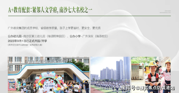 3. **教育完备**:中国铁建·花语上城在教育资源配套上堪称豪华,为业主子女打造了一站式教育体系。家门口对面就是南沙七大名校之一的广外教育集团成员学校,其省级教育质量备受认可,先进的教学理念、雄厚的师资力量、丰富的课程设置,为孩子们提供了优质的教育环境,让孩子在起跑线上就领先一步。不仅如此,公办幼儿园南沙区第三幼儿园(海语熙岸园区)以及公办小学广外滨实(海语校区)已于2023年9月1日正式开园/开学(具体招生条件以政府部门发布政策为准)。从幼儿启蒙到小学基础教育,孩子步行即可到校,家长无需每天长途接送,节省时间与精力的同时,更保障了孩子上下学的安全,让家长们省心又安心。在孩子成长的关键阶段,优质的教育资源近在咫尺,浓厚的学术氛围环绕,为孩子的未来发展奠定坚实基础,满足了家庭对子女教育的高要求。