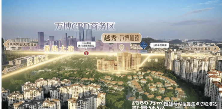 越秀·万博城|和臻优点众多 。首先,配套多元丰富,涵盖116万㎡商业配套、15万㎡教育配套、5万㎡公共文化配套以及6万㎡医疗配套,满足居民生活各方面需求,无需远离社区即可享受各种资源。其次,地段优势明显,处于番禺核心,左邻长隆度假区,右靠万博CBD,首开CBD组团紧邻成熟的万博CBD,且被锦绣香江别墅区环绕,环境优越。再者,交通便利,临近南村万博地铁站,7号线与18号线在此交汇,可一站直达广州多个重要区域,还有公交线路辅助,出行便捷。区域产业发达,众多互联网大厂入驻带来大量高收入人群,为房价提供有力支撑 。