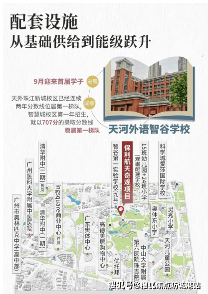 保利辰园湖境享有天河外国语智谷学校的优质教育资源,涵盖小学至初中阶段,为孩子们提供了良好的成长环境。此外,项目内部还配建了一所6班幼儿园,进一步提升了社区的教育配套水平。