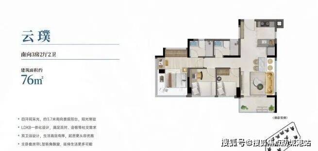 所谓“新规户型”,是指按照2023年广州出台的《住宅设计规范》打造的户型,相比旧规户型,新规户型在采光、通风、空间利用率等方面都有了显著提升。广开·云翰的所有户型均采用全南向设计,实现了三至五开间采光,这意味着即使是最小的76㎡户型,也能保证每个房间都有充足的阳光照射,让室内始终明亮温暖。
