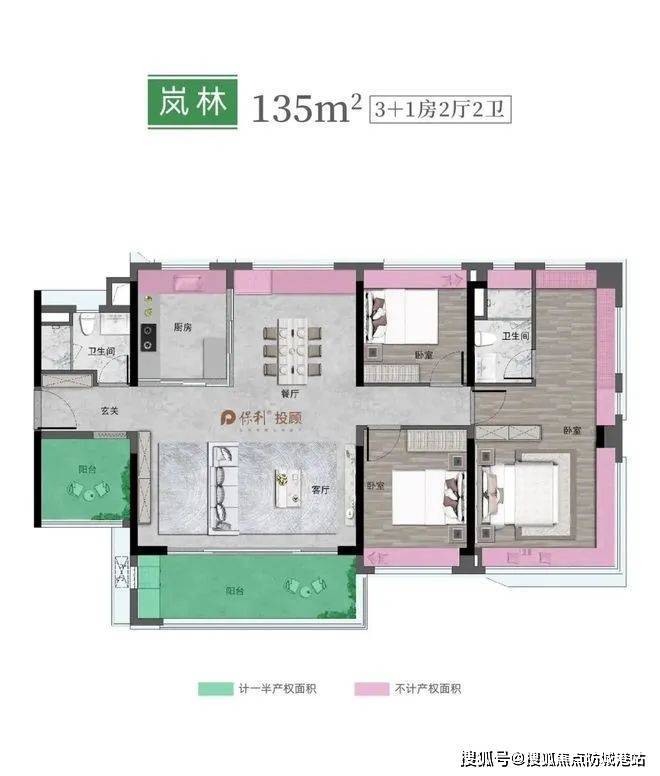 改善户型 / 135㎡4+1房2卫:宽敞舒适的居住空间,适合大家庭。