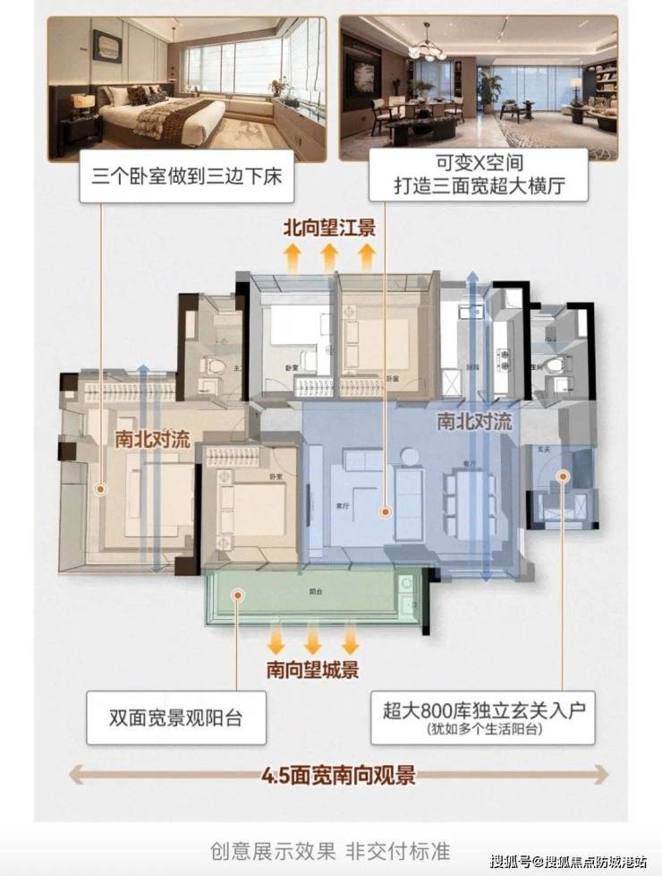 该户型交付时带有大横厅设计,通过打通次卧可变身为三面宽超级横厅,解锁接近20种生活方式表达,极大地提升了空间利用率和居住体验。