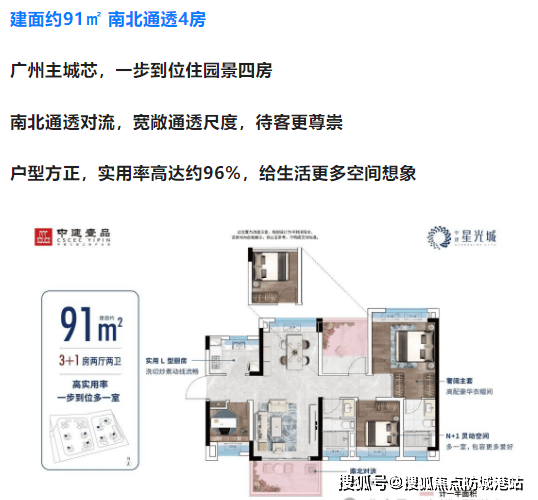 91㎡南北通透4房:宽敞通透,适合大家庭居住,方正实用。
