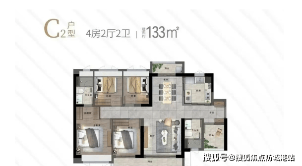 目前在售户型主要集中在建面133-141平方米的三四房单位,总价从37X万起。特别是133平方米的四加一房两卫户型,配有6.6米长的阳台,超长采光面,餐客厅一体化设计,主卧带有独立衣帽间;而141平方米的五房户型则更加宽敞,配备7米长的阳台,南北对流设计,主卧双采光通风,视野开阔无遮挡。