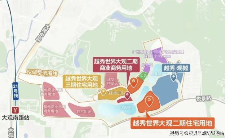 2、**交通配套**:观樾|天湖地处天河区世界大观区域,位于悦景路以北、帝景山庄以西。就现状交通而言,距离最近的地铁大观南路站约2km,对于依赖公共交通出行的居民来说,存在一定的不便。当前,越秀观樾、合生缦云、合景帝景山庄等周边小区的业主主要通过悦景路出行。悦景路东接珠吉路,西连奥体路,进而能够与广园快速、大观南路等主干道相连,上下高速相对便捷。不过,悦景路目前存在交通拥堵等问题。值得庆幸的是,悦景路牛奶厂段已启动拓宽工程,施工期预计三个月,整个工程预计2025年建成通车。若工程顺利推进,越秀·观樾及缦云广州等新盘业主交房后,便能享受到悦景路改造带来的交通便利。不仅如此,未来世界大观还将新建一条道路,直接接驳奥体路与机场二高速。待这些交通工程完工后,板块的交通短板将得到有效补齐,居民出行将变得更加顺畅,无论是前往城市的各个角落,还是进行跨区域出行,都将更为高效便捷。