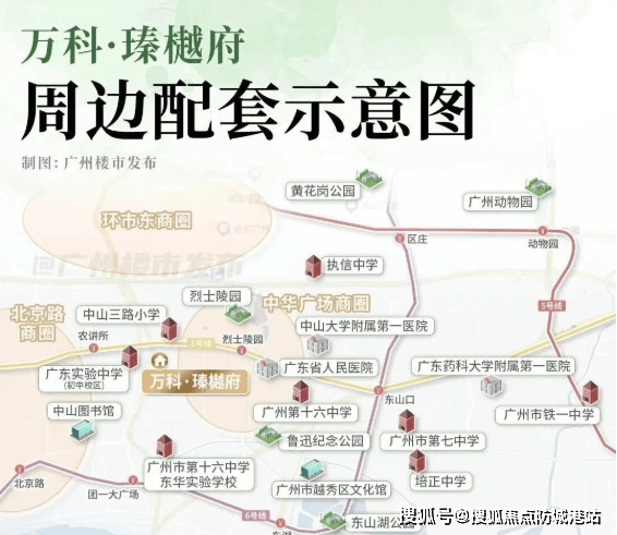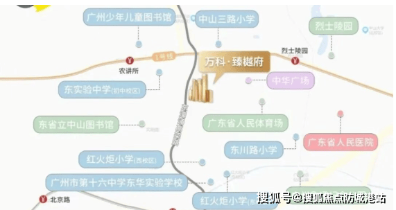 万科瑧樾府位于广州市越秀区的老城区东川路核心腹地,是广州成熟区域的一部分。其具体位置使得交通极为便利,距离地铁1号线农讲所站仅约400米,6号线团一大广场站约700米。此外,自驾出行也非常方便,周边有高濠涌高架路、东风路、中山路等主要干道。