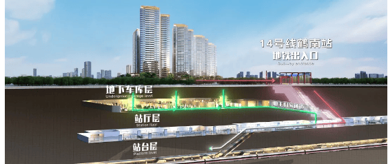 项目交通优势堪称板块标杆,是典型的 TOD 项目。距离在建的 14 号线鹤南站仅 200 米,未来开通后可直达社区地下二层车库楼栋大堂,实现 “风雨无阻” 归家,无需担心天气影响。14 号线二期(嘉禾望岗 - 广州火车站)目前土建工程进度 62%,预计 2025 年建成,未来可快速换乘 2 号线、3 号线等线路,通达广州各大核心区域。