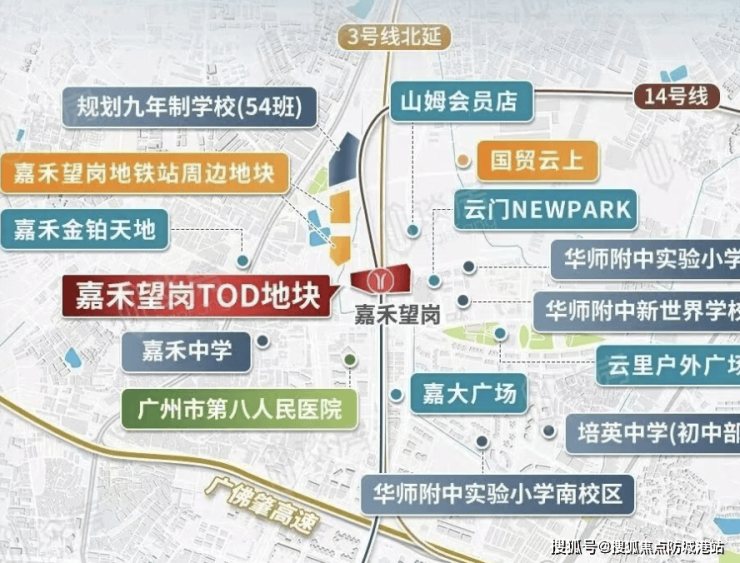 A: 根据官方数据,项目位于广州白云区嘉禾望岗板块,楼下就是2号线+3号线+14号线,是真·地铁上盖TOD项目。0换乘可达广州四大枢纽及八大核心商圈。