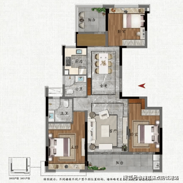 棋语:约119平方米南北对流大四房