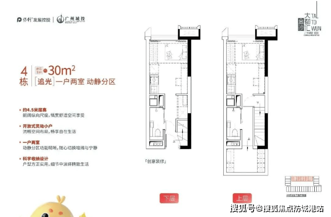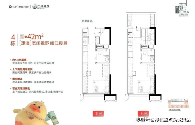 保利金沙大都汇推出的主力户型为建面30-42㎡的双层产权公寓,每套公寓均配备独立双入户设计,并拥有4.5米的层高。这种设计不仅提供了更高的空间利用率,还赋予了业主更多元化的使用方式。例如,上层可以自住,下层出租;或者将上下层全部出租以提升收益率。首期投入仅需58万起,性价比极高。