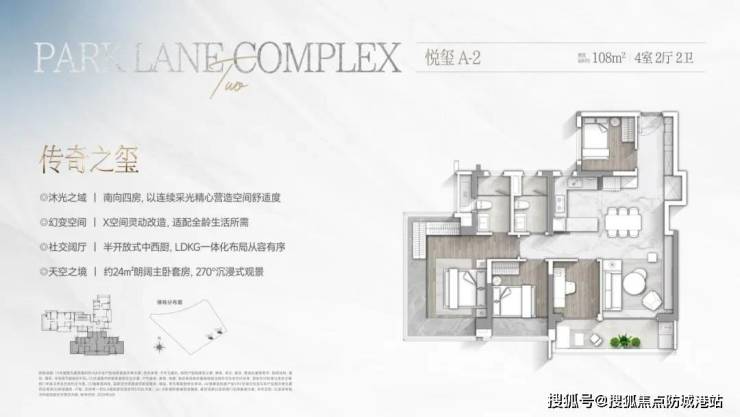108㎡四房两卫:南向四开间,主卧带270°飘窗,总价约600万;