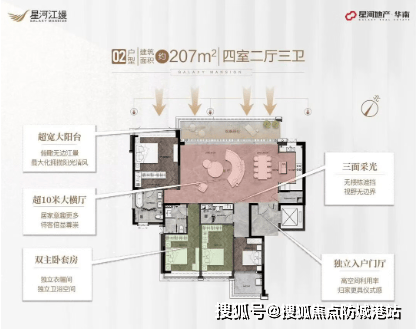 星河江缦提供从179㎡到235㎡的大平层户型,所有户型均采用专梯专户设计,确保居住者的隐私与安全。LDKB一体化的设计理念,搭配超宽大阳台和双主卧套间,让家庭成员尽享舒适与奢华。尤其是那些追求极致视野和景观的家庭,这里无疑是理想之选。