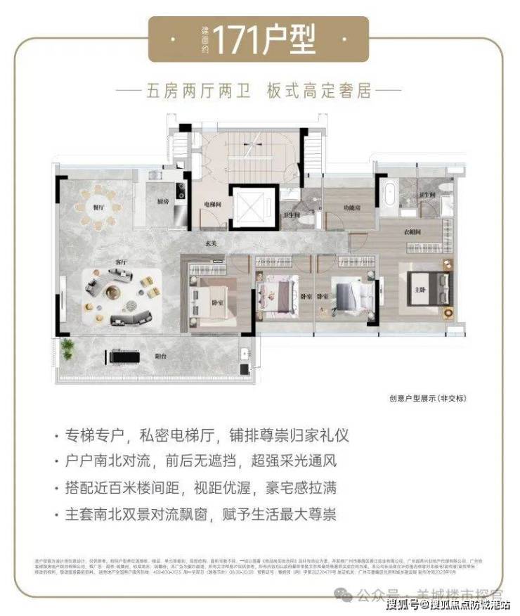 建面约171㎡奢适五房:低密8F小高层,专梯入户,五房设计,适合三代同堂居住。