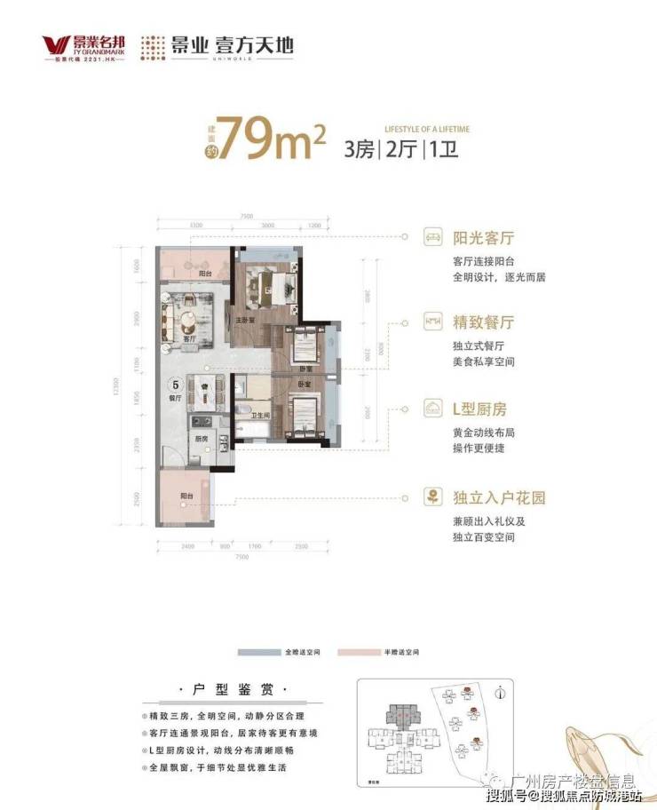 约 79 ㎡ 3 房+2 厅+1 卫+入户花园