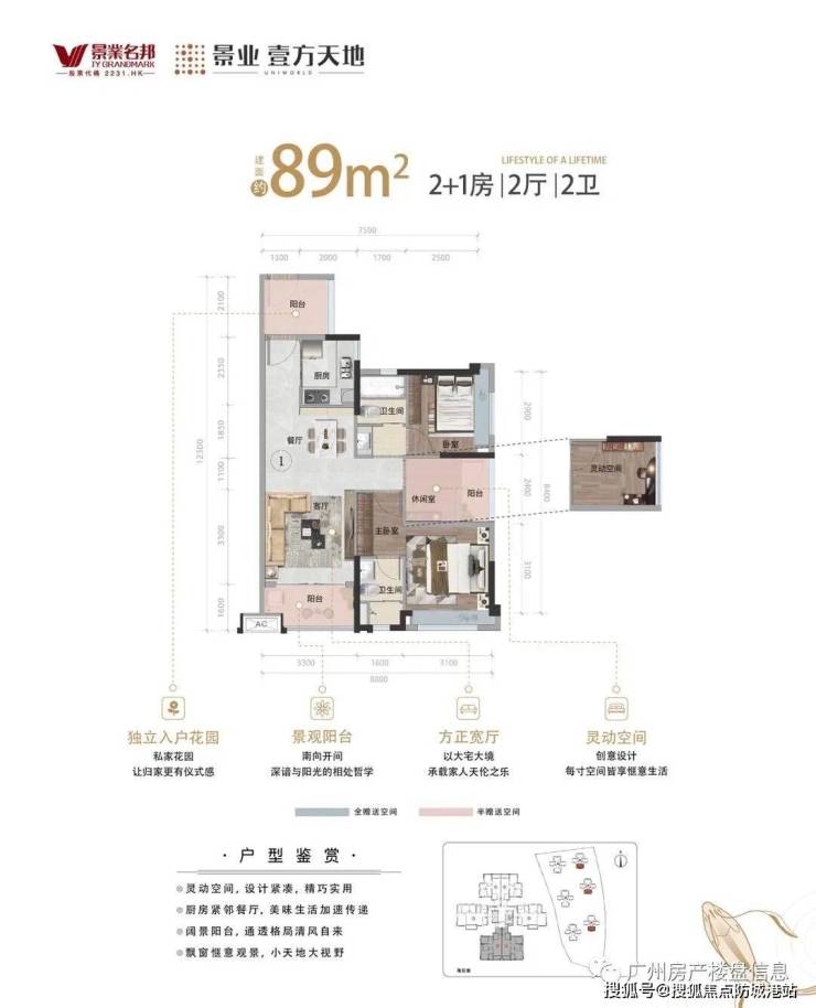 约 89 ㎡ 2+1 房+2 厅+2 卫+入户花园