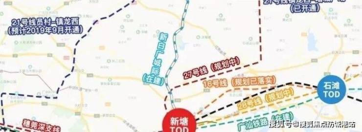 广州地铁16号线石滩站(规划中) 可快速联通增城TOD、新塘TOD, 快线4站到天河;通过东莞4号线(规划中) , 串联东莞城区。