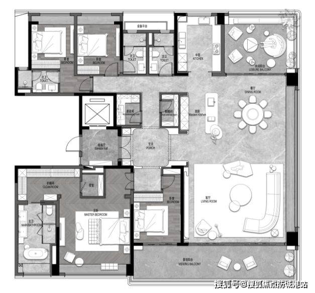 亮点:奢华大平层设计,拥有极致的景观视野和私密空间,适合追求极致生活品质的家庭。