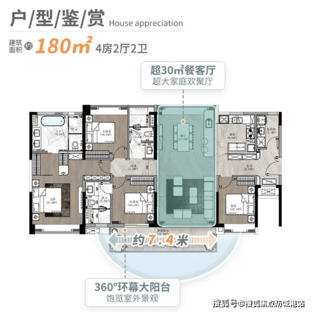 180平方米的四房户型,则是进阶改善的代表作,主要集中在B栋和E栋的二梯三户楼栋中。该户型采用了双主套设计,两个主卧均配备了独立卫浴和步入式衣帽间,私密性极佳。这种设计特别适合二胎家庭或有两位老人的家庭,每位家庭成员都能拥有自己的独立空间,互不干扰,体现了对每个人隐私的尊重。此外,项目还专门设置了家政区和多功能房。家政区可以用来存放清洁工具、洗衣机等,保持室内整洁;多功能房则可以根据家庭需求灵活改造,既可以作为书房供主人办公学习,也可以作为儿童活动室供孩子玩耍,甚至可以改造成影音室,满足休闲娱乐的需求。空间利用率高达86%左右,每一寸空间都被充分利用,没有浪费。细节设计上的贴心之处,如收纳空间的合理规划、动线的科学布置等,都体现了设计师对居住者生活习惯的深刻洞察。