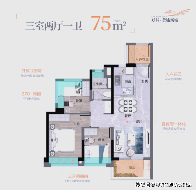 加粗:75㎡三房一卫:刚需入门首选,190万起轻松上车