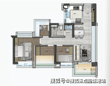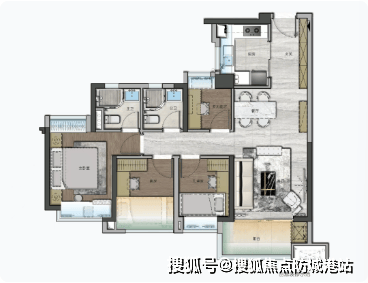 建面约 143㎡ 四房两厅三卫:高端改善款,二期大户型,南北双阳台(瞰景阳台约 7 米),四开间朝南,采光通风极佳;双套间设计(主卧 + 老人房均带独立卫浴),适配三代同堂;主卧套间含独立浴缸与步入式衣帽间,公共空间餐客厅面积超 40㎡,适配高端家庭聚会;精装标准升级(如全屋中央空调、新风系统),适合白云地缘高端改善家庭,稀缺性与居住舒适度双优。