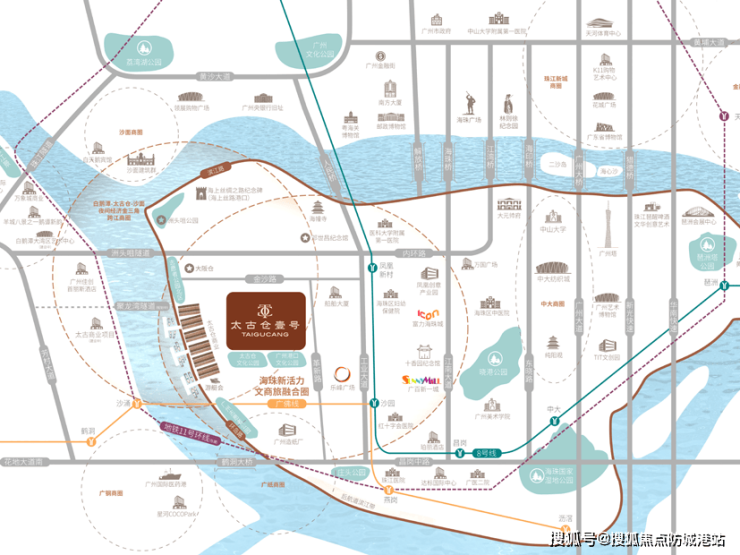 太古仓壹号位于广州市核心区域,紧邻白鹅潭CBD、太古聚龙湾和海珠西商圈等重要商业区。其地理位置优越,不仅串联起白鹅潭商务区、聚龙湾综合体以及太古仓等多个城市新人文地标,还与琶洲、白鹅潭、广钢、广纸等四大繁华商圈形成“水陆双循环”的顶级商圈格局。对岸即是聚龙湾太古和白鹅潭CBD,这里人文与艺术交相辉映,是孕育全球前沿水岸生活的世界橱窗。