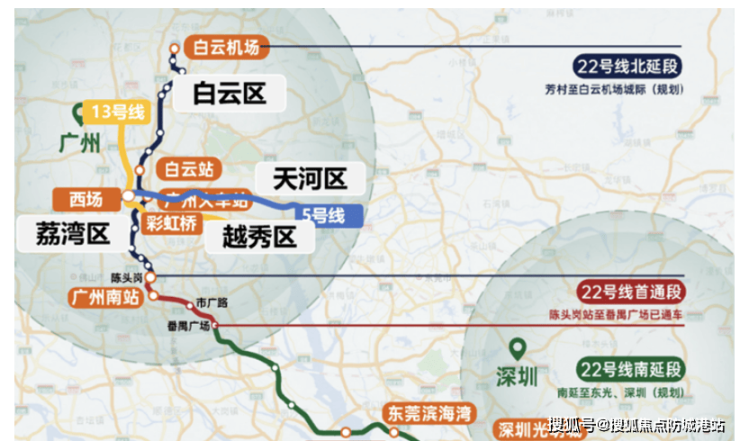 4. 越秀·星瀚TOD周边地铁线路织成密集网络,往来湾区体验全新畅快。项目位于22号线陈头岗上盖,1站到广州南站换乘高铁与地铁2号线,3站达番禺广场接驳3、7、18号线,22号线北延段8站到白鹅潭,贯穿多区。距离2号线会江站约1.2公里,3站到海珠,联动越秀、白云。自驾依托南大干线11分钟达万博,通过东新高速等快速通达广佛。这种“地铁+自驾”的组合,让往来湾区无论是通勤、跨城出行还是休闲购物都高效便捷,30分钟内联动广佛核心区,真正实现湾区生活圈的畅快体验。