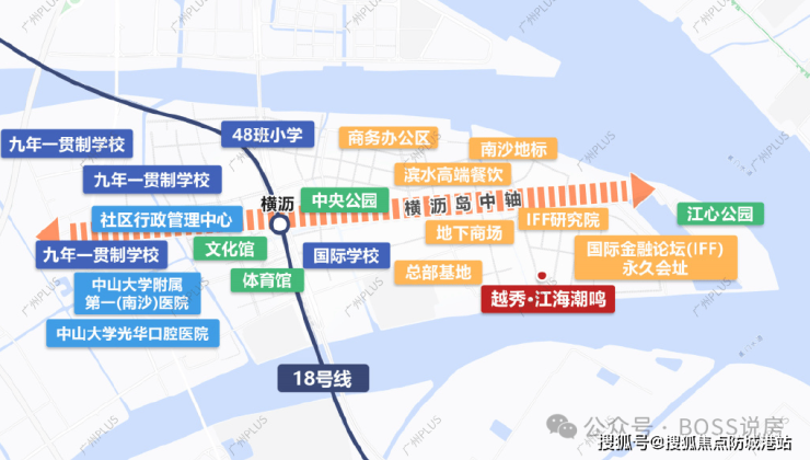 教育资源: 项目周边教育资源密集,广州大学附属中学南沙实验学校(省一级)距离约1.2公里,横沥岛九年一贯制学校(规划中)距离约800米,具体入学政策以教育局公布为准。