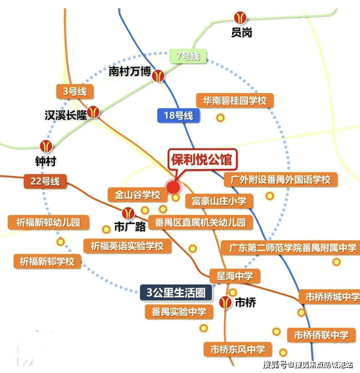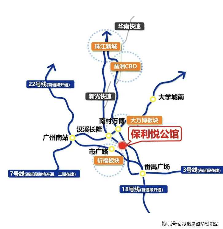 1. **占据城市黄金位置**:保利悦公馆地处番禺市广路成熟板块,虽未完全处于万博核心圈,但凭借“紧邻万博CBD+成熟居住区+旧改红利辐射”的三重优势,成为番禺北部宜居宜业的黄金节点。从资源集中度来看,项目周边3公里内聚集了招商金山谷、富豪山庄、中铁建花语岭南等成熟社区,生活氛围浓厚,烟火气十足,日常办事可依托周边成熟的社区服务中心、政务网点,无需长途奔波。商业资源更是密集,万博、祈福、市桥三大商圈环绕,万达、天河城、祈福缤纷世界等十余座商业体开车10分钟内可达,购物、餐饮、娱乐需求全面覆盖。医疗配套方面,周边3公里内有祈福医院(三甲)、番禺区中医院(二甲),为健康保驾护航。更关键的是,项目紧邻里仁洞村旧改片区,该旧改规划14所学校、1所综合医院、14.4万㎡上盖平台公园及240米地标商业体,未来将成为番禺北部智能科技创新平台,项目可直接享受旧改带来的资源升级红利,当前成熟配套与未来发展潜力叠加,尽显城市黄金位置的居住价值。