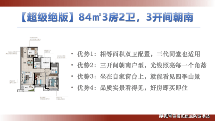 84㎡带主套宜居“2+1”户型:南向望园林,适合三口之家。