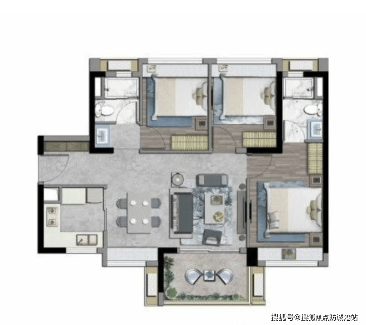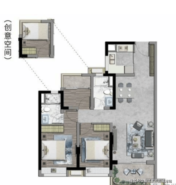 例如,约80㎡的2+1房2厅1卫户型非常适合首次置业的家庭,采用经典竖厅设计,动静分区合理,U型厨房充分利用空间;