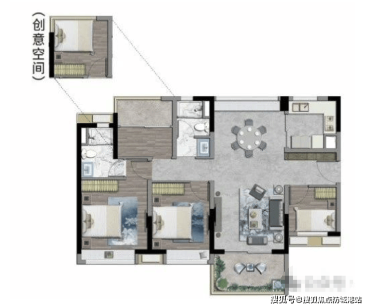 最后,约113㎡的3+1房2厅2卫户型则是南北对流的单边位户型,双向采光,户型方正,为业主营造了舒适的居住空间。