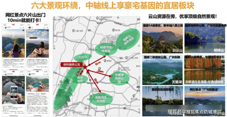 保利锦绣公馆所在的区域被白云山、南湖景区、天鹿湖、帽峰山、六片山、龙洞生态景区六大生态景区环绕,推窗即可见山景,轻松打卡网红景点六片山,享受千万级云山视野。此外,社区内部也注重园林景观的设计,为居民提供了一个放松身心、亲近自然的空间。项目由保利发展打造,凭借其强大的品牌实力和多年深耕广州市场的经验,为项目的品质和后期物业服务提供了坚实保障。