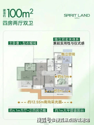 100㎡四房:实现四开间朝南与7.2米观景阳台,为多孩家庭提供理想空间;