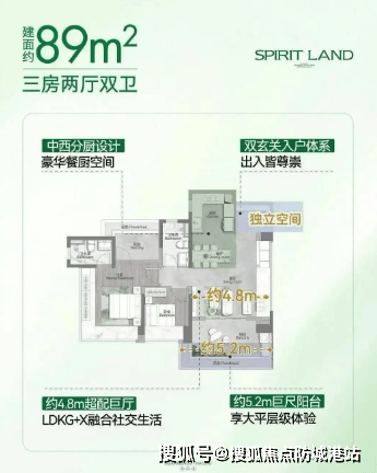 89㎡三房:以约115%得房率刷新海珠小户型空间效率,配置双玄关、4.8米开间客餐厅及270°飘窗主卧;