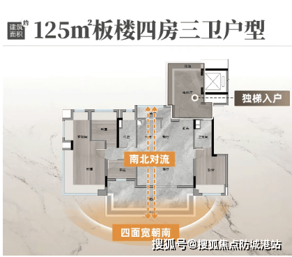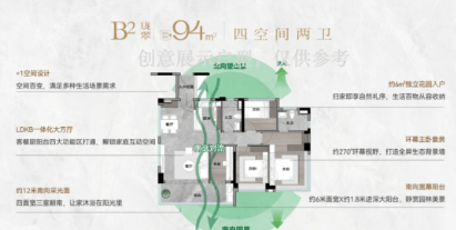 110平方米户型:专梯入户,南北双向围合式园林景观,LDKG空间设计灵活多变。