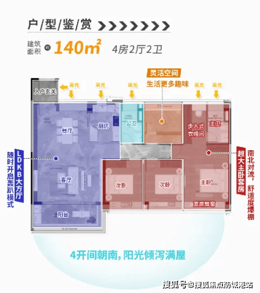140㎡四房两厅两卫|改善热销户型,得房率89%