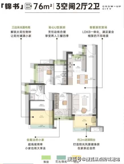 【产品力解析】76-126㎡全南向户型,得房率超100%,空间魔术师