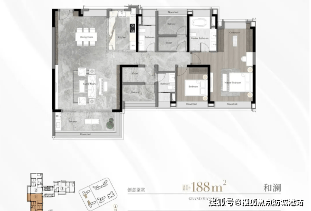 项目主推建面约107-140平米的全四房小区,目前进入清货阶段,价格有所下调,现均价为6.6万至8万元/平方米。此外,还有建面约160-188平米的滨江四房户型可供选择。