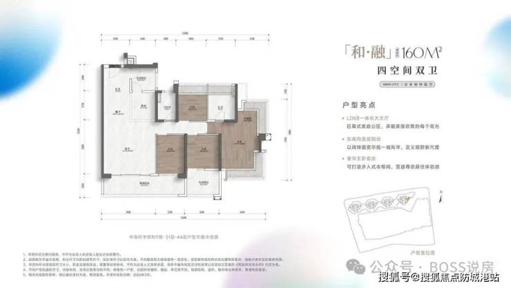160㎡四房三卫:奢阔改善,超大景观阳台,主卧独立衣帽间 + 卫浴,高端改善首选。