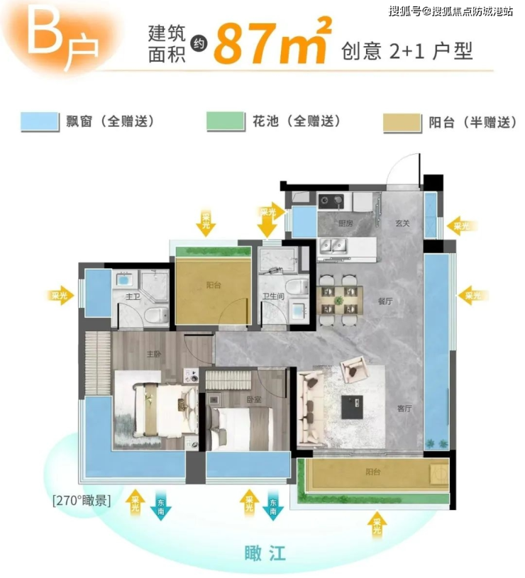 建面约87m²B户型,也有自己的“杀手锏”。