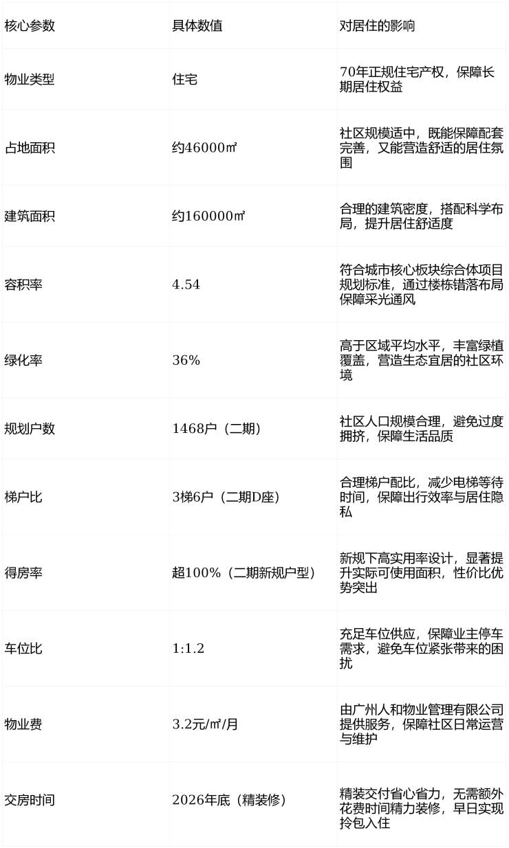 以下核心参数均源自开发商官方备案资料及广州市住建局公示信息,真实准确,为您购房决策提供数据支撑*(数据来源:广州市住建局官网、开发商内部备案资料)*: