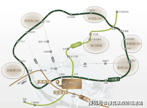 三地铁环绕:距离石溪站750米、燕岗站900米,广佛线、10号线、11号线三线交汇,8站直达琶洲,交通极其便利。